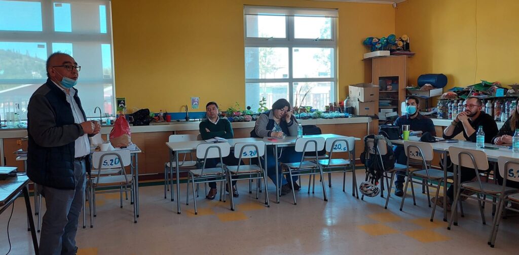 Los equipos de Convivencia Escolar de las Escuelas Municipales, se reunieron hoy en una actividad coordinada por Iván Gárnica, asesor de la Unidad Técnica Pedagógica del Departamento de Educación, en donde el Lonko Emilio Loncón, nos entregó una experiencia pedagógica en relación a la temática «Protocolo de perrimontugechi che (poderes sobrenaturales hacia las personas en contexto mapuche).