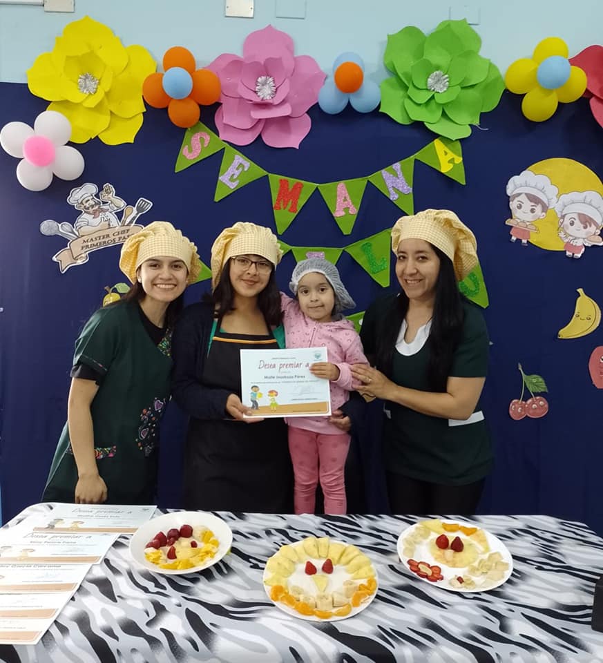 Por lo anterior, quisieron sorprender de manera lúdica y pedagógica, llevando a cabo el Master Chef Familiar, en el cual los párvulos y sus familias, crearon colaborativamente diversos platos de frutas los que fueron degustados por todos los integrantes de la unidad educativa.