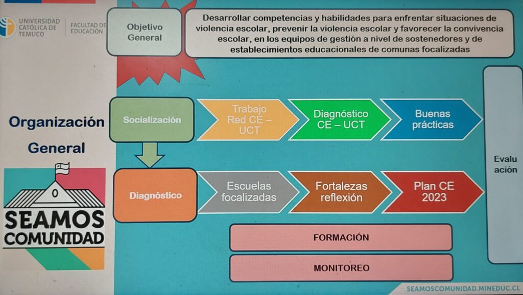 Comenzamos el día con una jornada de trabajo dirigida a los equipos pedagógicos de las escuelas de la comuna, la cual se enmarca dentro del «Programa Territorial de Convivencia Escolar y Atención en Crisis» del Ministerio de Educación en conjunto con la Universidad Católica de Temuco, cuyo objetivo es que los docentes desarrollen habilidades de convivencia para evitar y prevenir situaciones de violencia escolar.