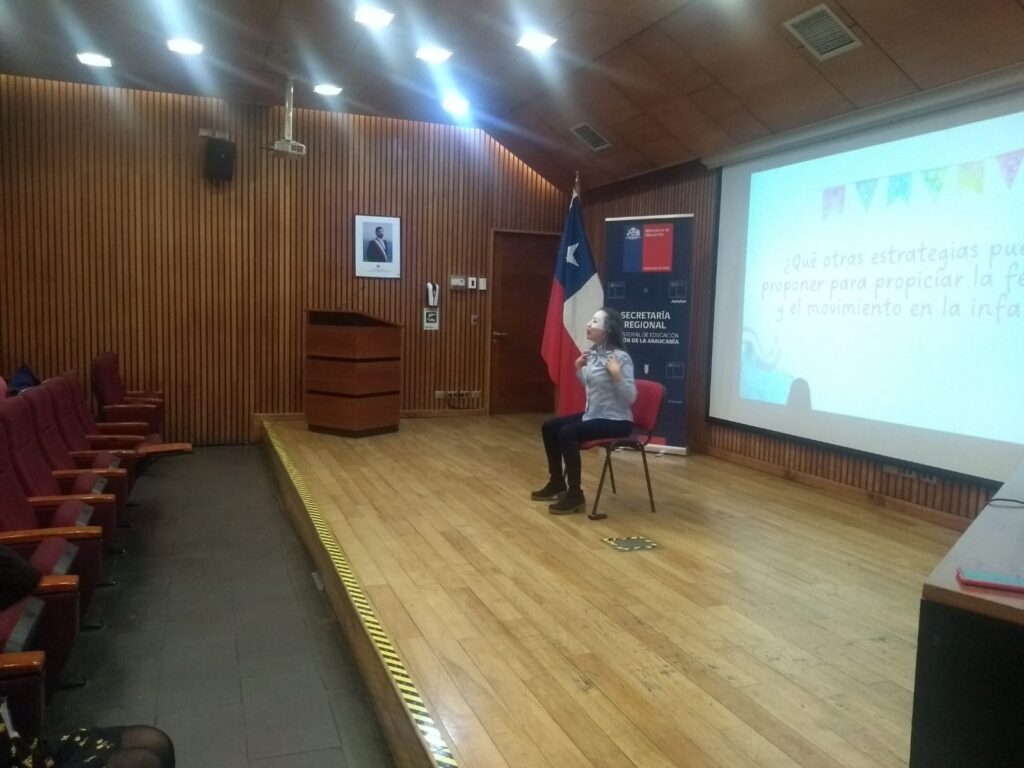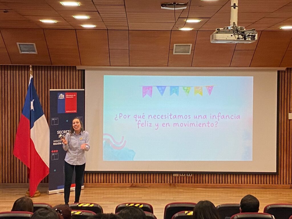 La actividad realizada en la Secreduc, contó también con la exposición destacada, de nuestra Coordinadora de Educación Parvularia Constanza Cancino, quien representó a nuestro Departamento de Educación, con la presentación «La contribución del yoga a una infancia feliz y en movimiento», que finalizó con una experiencia práctica de yoga en silla.