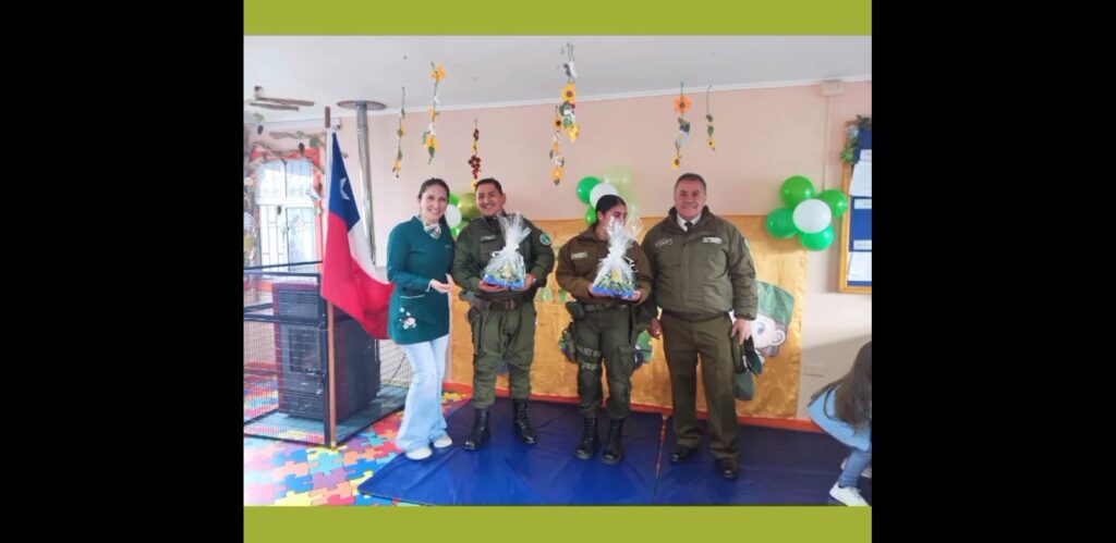 La comunidad educativa de la Sala Cuna Pulmahue, quiere compartir con ustedes la experiencia realizada por el Día del Carabinero, con el fin de reforzar algunos aprendizajes abordados, finalizando la experiencia con su visita en donde pudieron compartir con parte del personal de dicha institución, quienes asistieron al establecimiento y pudieron recibir por parte del plantel educacional unos presentes como agradecimiento por el apoyo a la comunidad y la celebración de su aniversario número 96°.