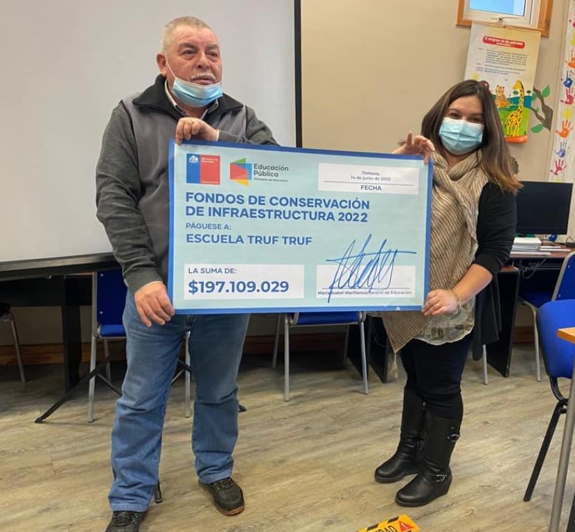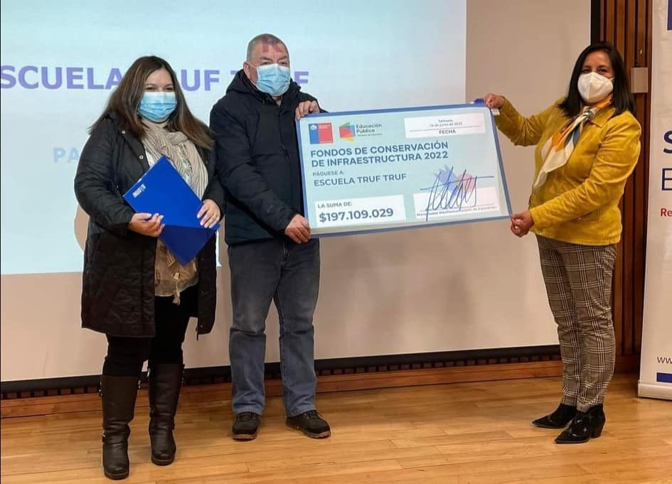 La Unidad de Infraestructura del Departamento de Educación Municipal, a cargo de Luis Blanco A., desarrolló proyectos de conservación para ser presentado ante la entidad correspondiente, dentro de los cuales 2 establecimientos fueron beneficiados: la Escuela Chapod con $267.000.000, los cuales serán destinados a mejoras termo acústicas, habilitación de rutas de acceso, mejoras en los servicios higiénicos, mantención de cierre perimetral y áreas verdes, entre otros, y la Escuela Truf Truf los que se invertirán en reposición de cubierta, mantención de instalaciones eléctricas y pintura interior de algunas áreas, por un monto de $197.109.029. ![]()