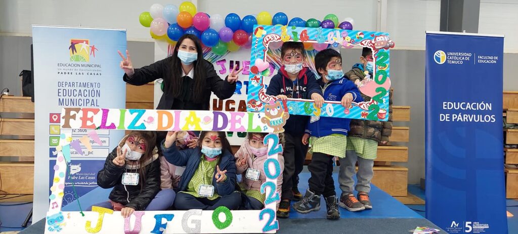 En este sentido, el juego define este como una expresión natural y fundamental para los niñas y niños, a la que se predisponen positivamente para generar importantes conexiones neuronales y construcción de aprendizajes, siendo este un primer ejercicio de participación ciudadana. Por otra parte, en esta nueva conmemoración de la Semana de la Educación Artística SEA 2022, se impulsa el lema; REcordar, REmover y REimaginar, a partir de experiencias educativas dinamizadoras y creativas, que busquen el protagonismo de niños y niñas, lo que también fue considerado en esta presente actividad. Agradecemos a nuestras redes de apoyo: Carrera de Educación Parvularia, Pedagogía en Educación Física y Pedagogía Básica Intercultural de la Universidad Católica de Temuco, Sala de Rehabilitación Infantil Comunitaria, Oficina de Protección de Derechos OPD, Programa Acompañamiento Psicosocial y Fundación Creseres por su compromiso y aporte con esta significativa actividad.